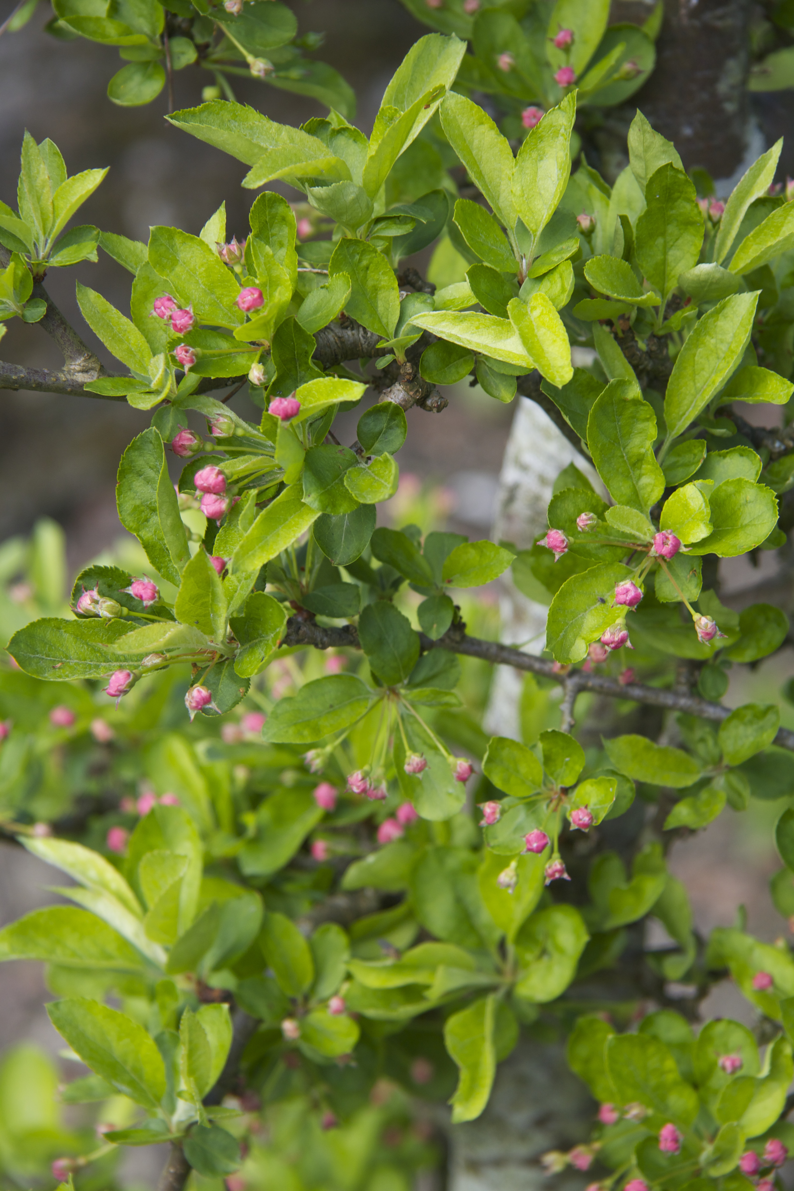 The crab apple used here is the compact and particularly broad variety, Malus sargentii, which has a profusion of long-lasting neat cherry-like red fruit from August onwards. The neat pink buds will open to white and the tunnel should be in full flower by the end of April/beginning of May.
