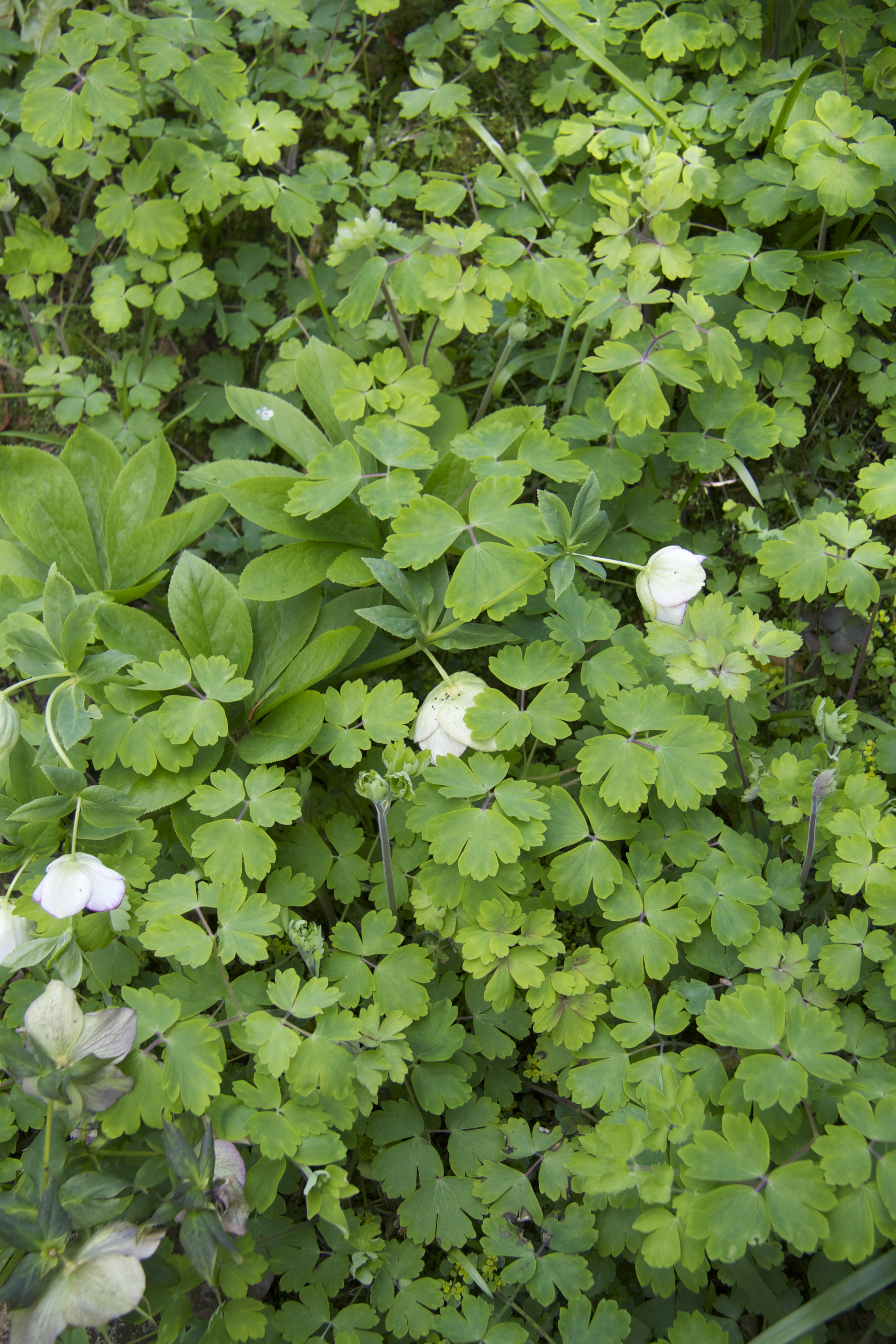 and as the hellebores begin to fade a sea of pretty leaved Aquilegia foliage is rising up to take over – a perfect and practical example of successional planting: