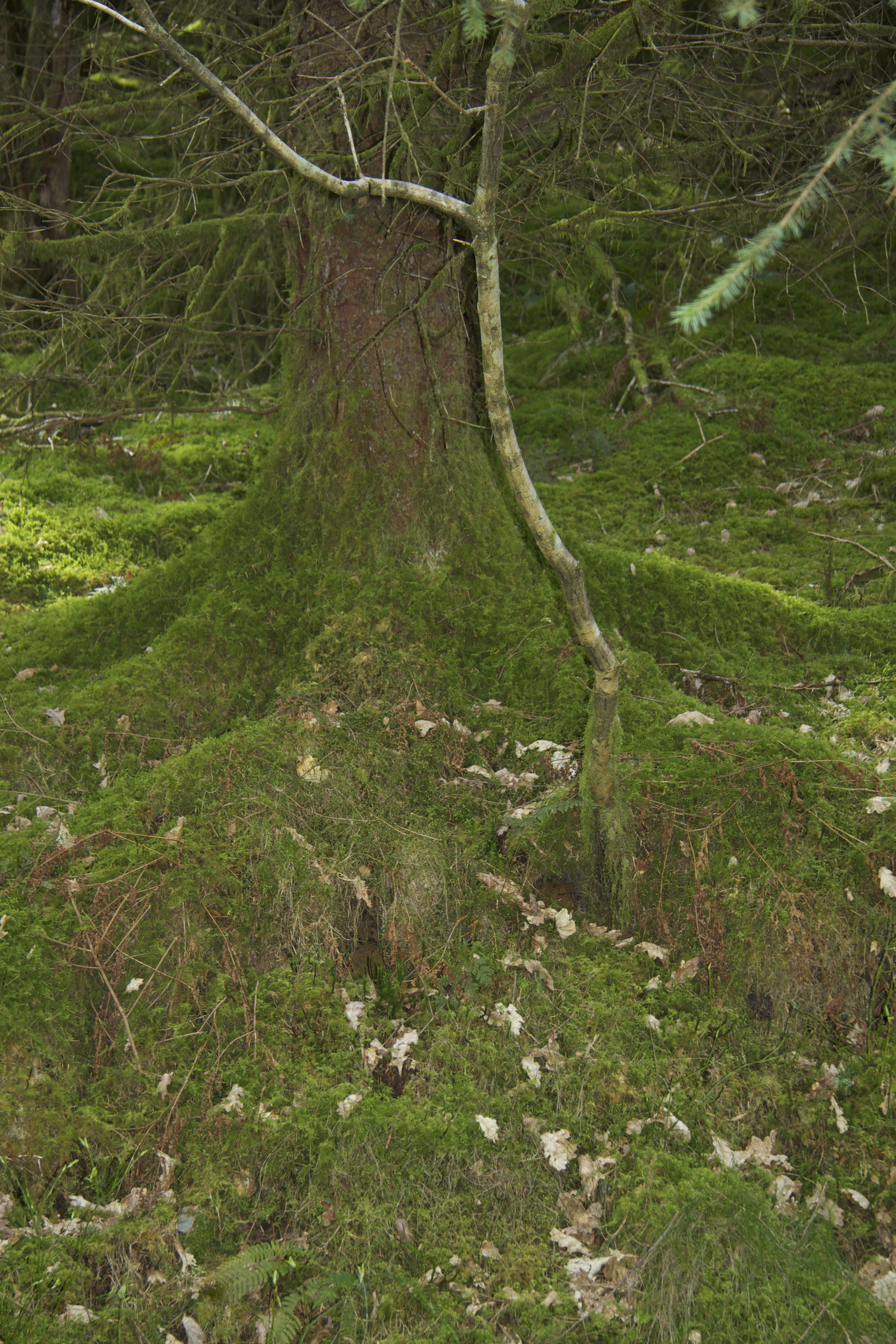 Clothing the base of trunks and catching fragments of available light: