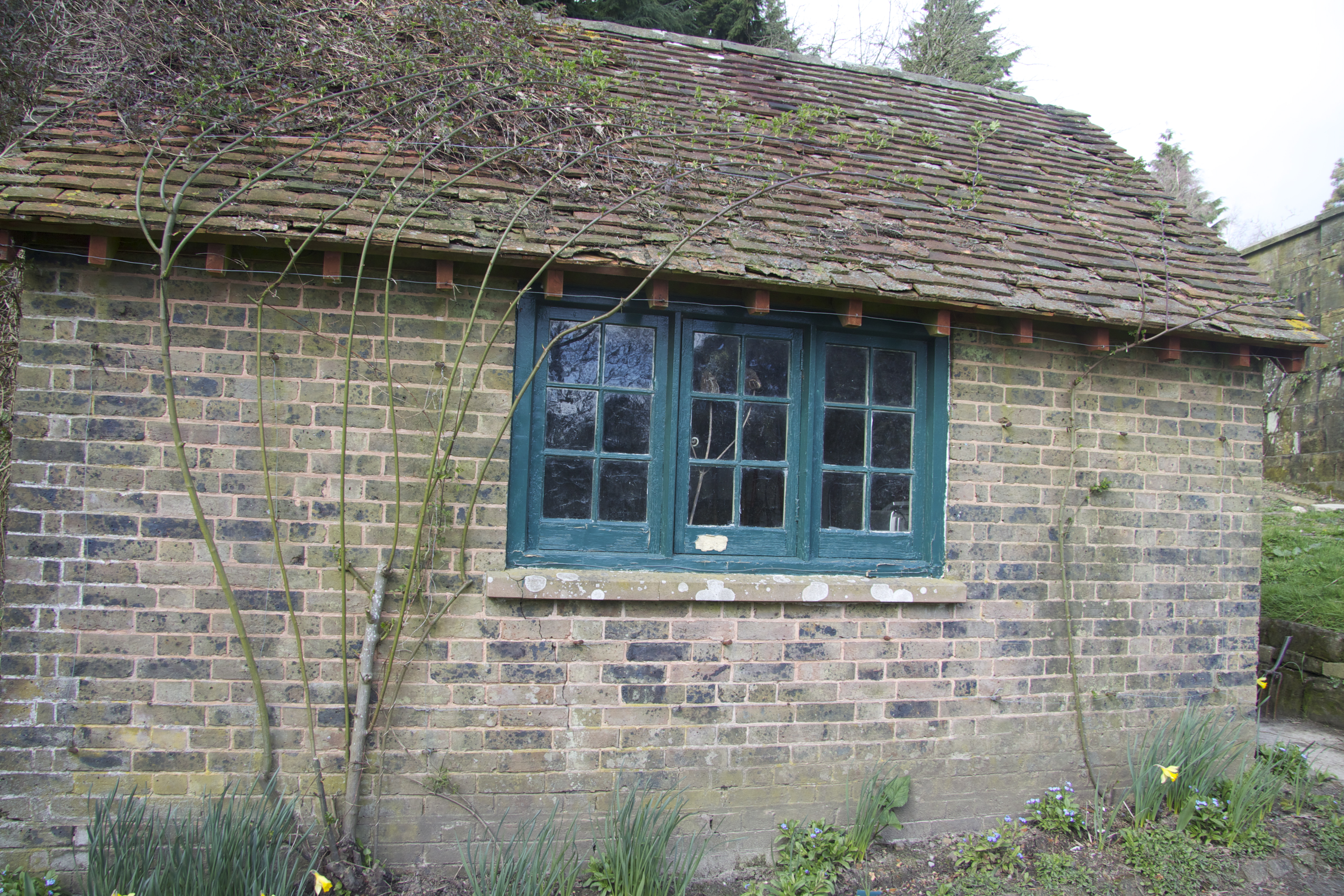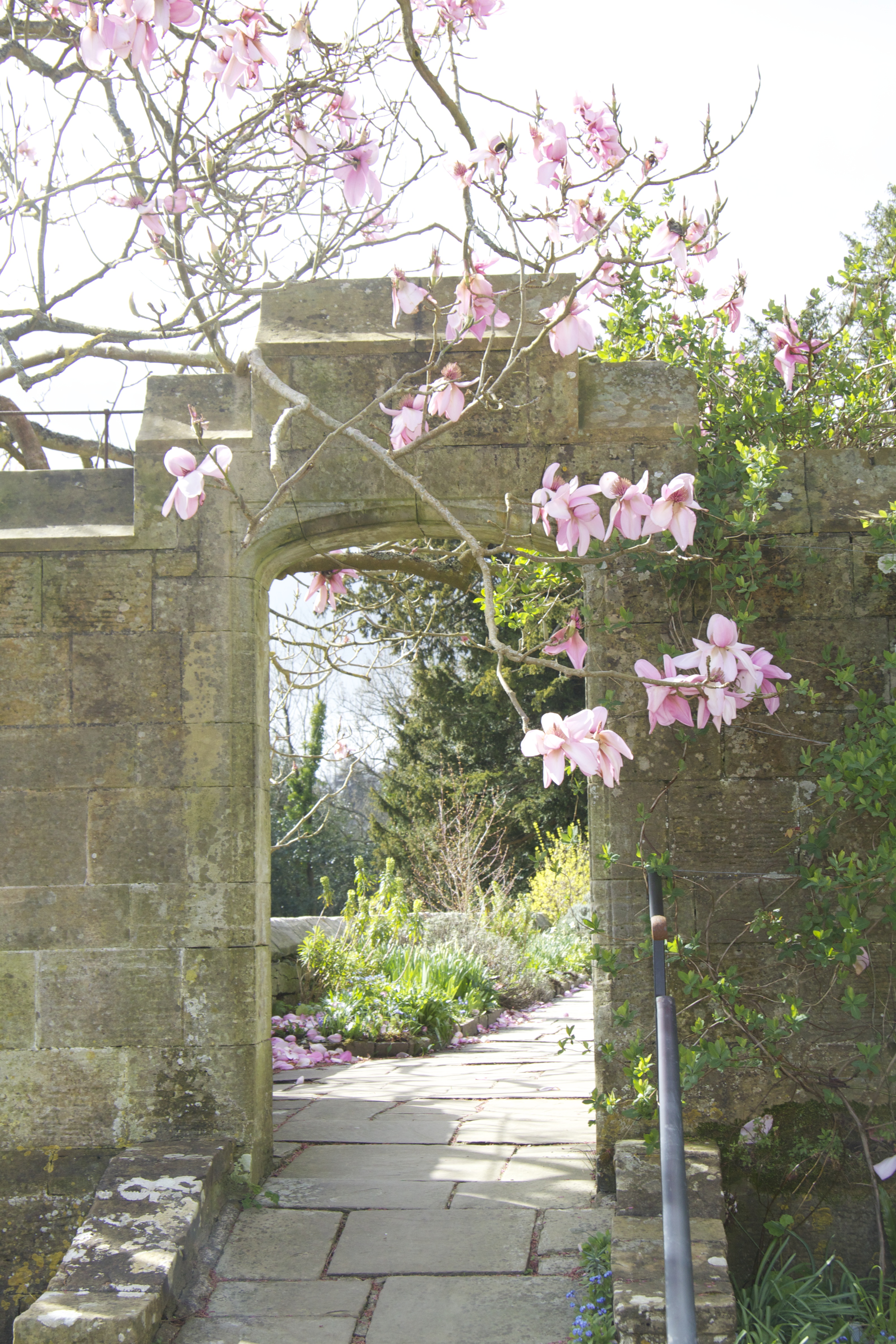 There are further crenellated walls elegantly laced with stems of Virginia creeper – again I am moved by this moment in the year when you can almost see the new leaves growing, trying to cover the wall completely.