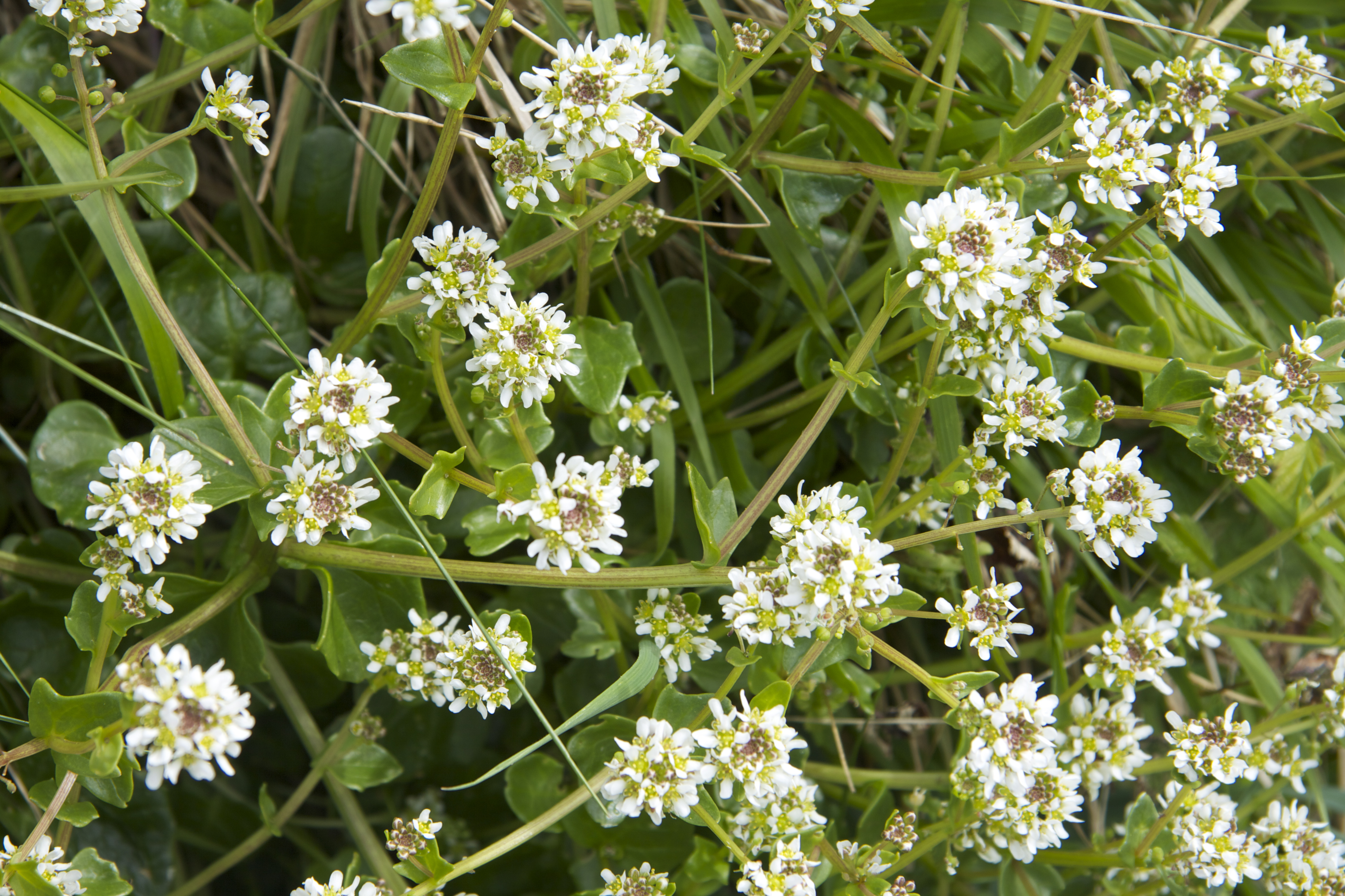 Neat mounds of common scurvy grass (Cochlearia officinalis):
