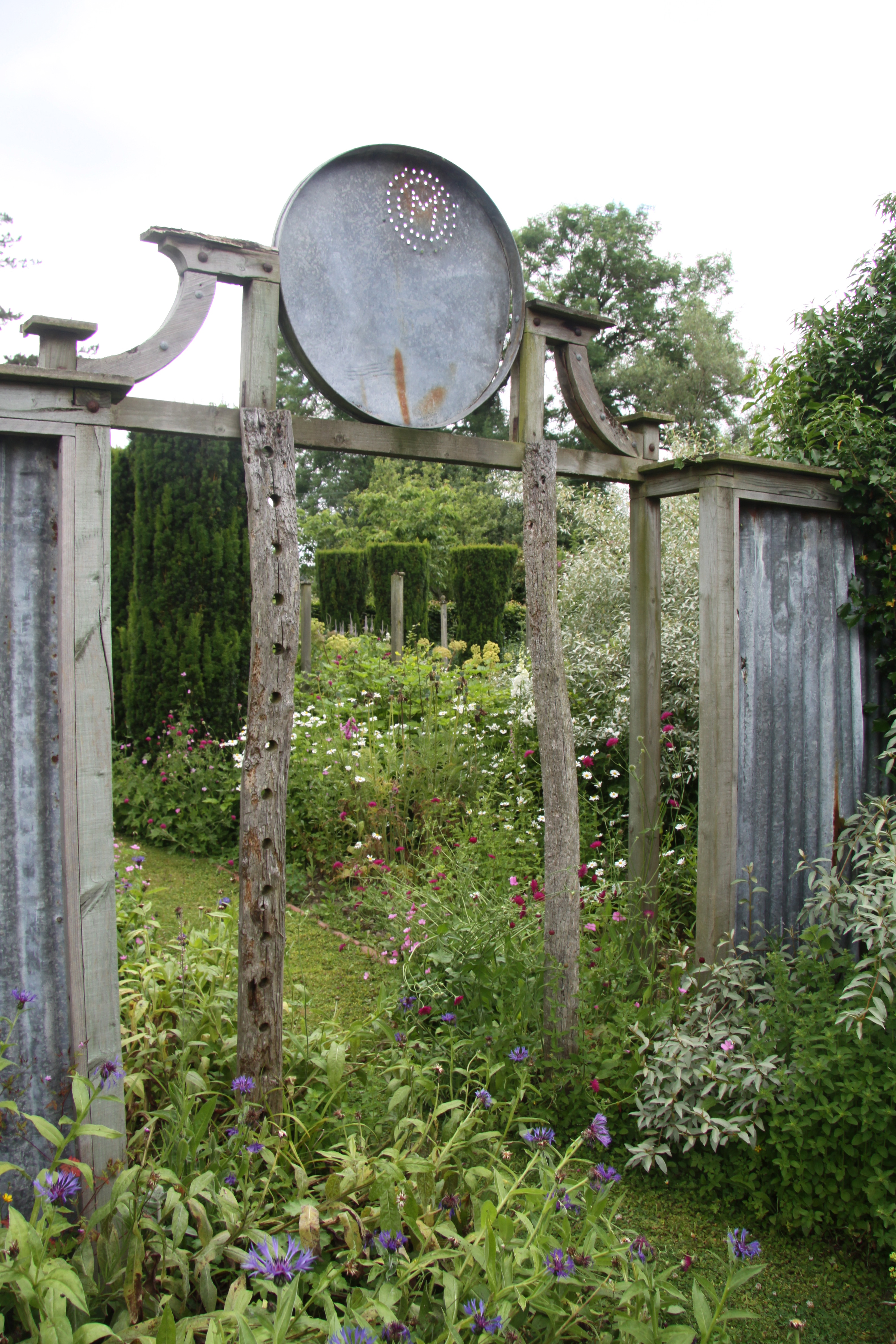 A gently shabby archway of recycled materials adds a layer of quirky grandeur to the cottage garden planting:
