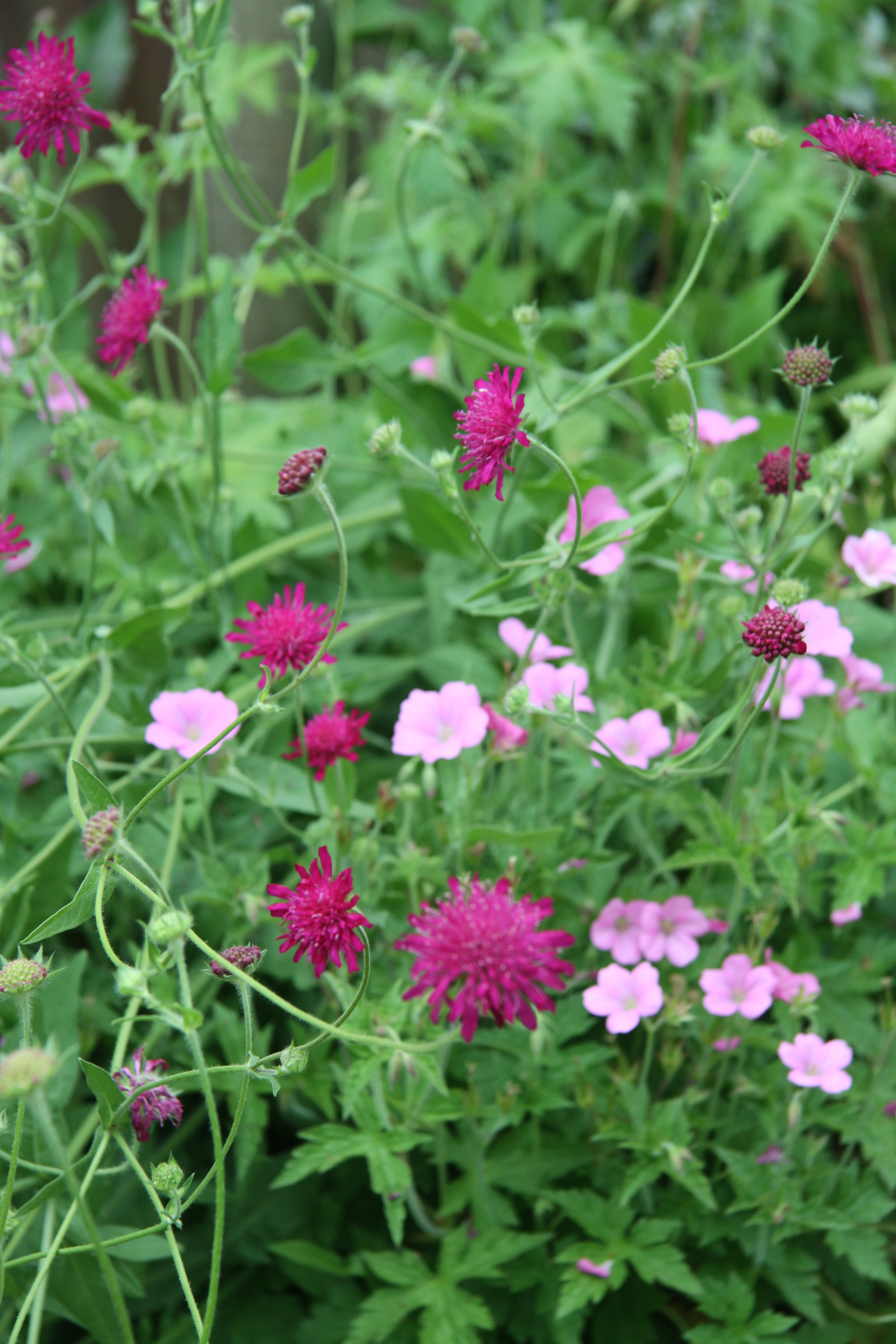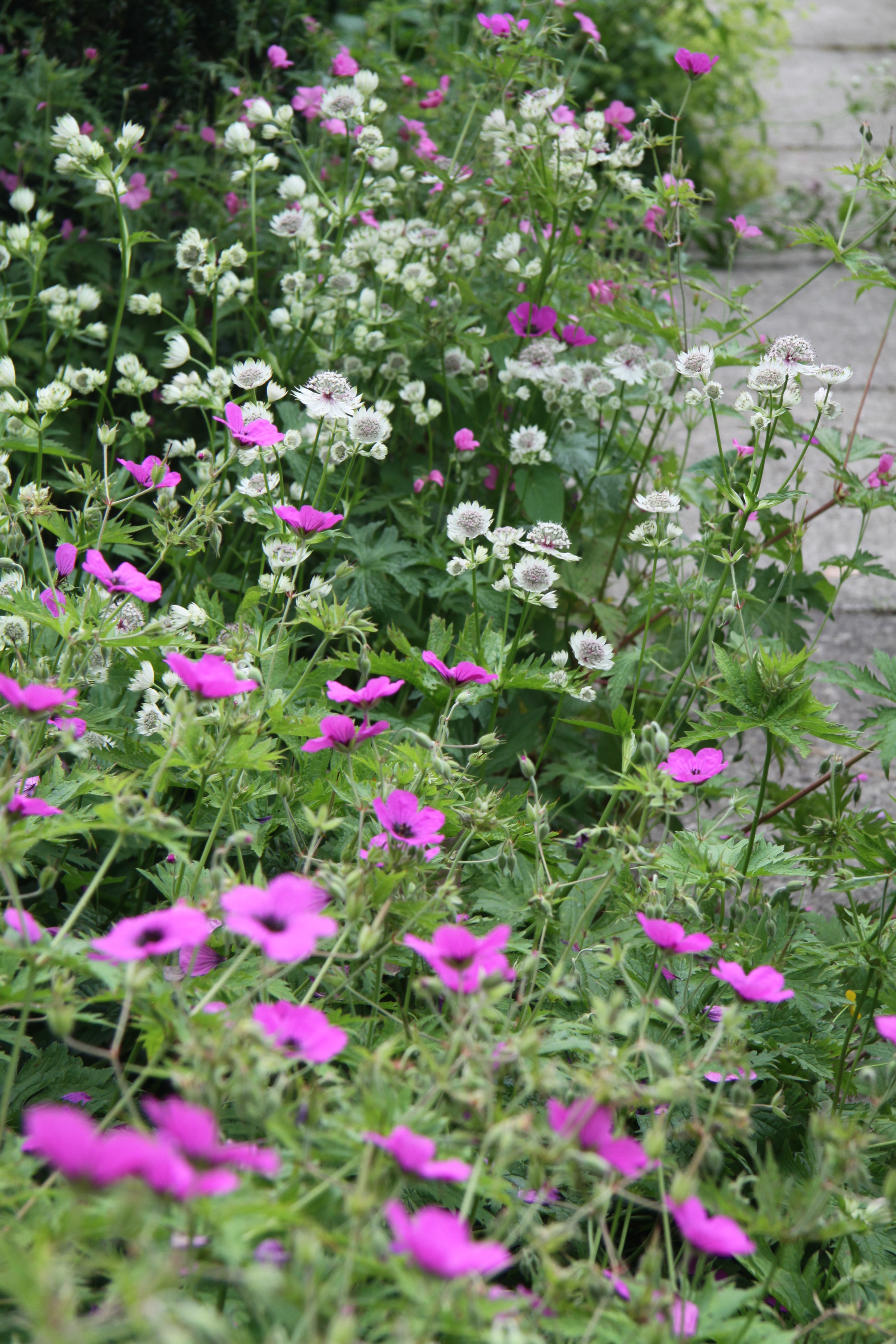 What really impresses me as I move around the garden is the simplicity of the planting – large quantities of astrantia and Geranium psilostemon: