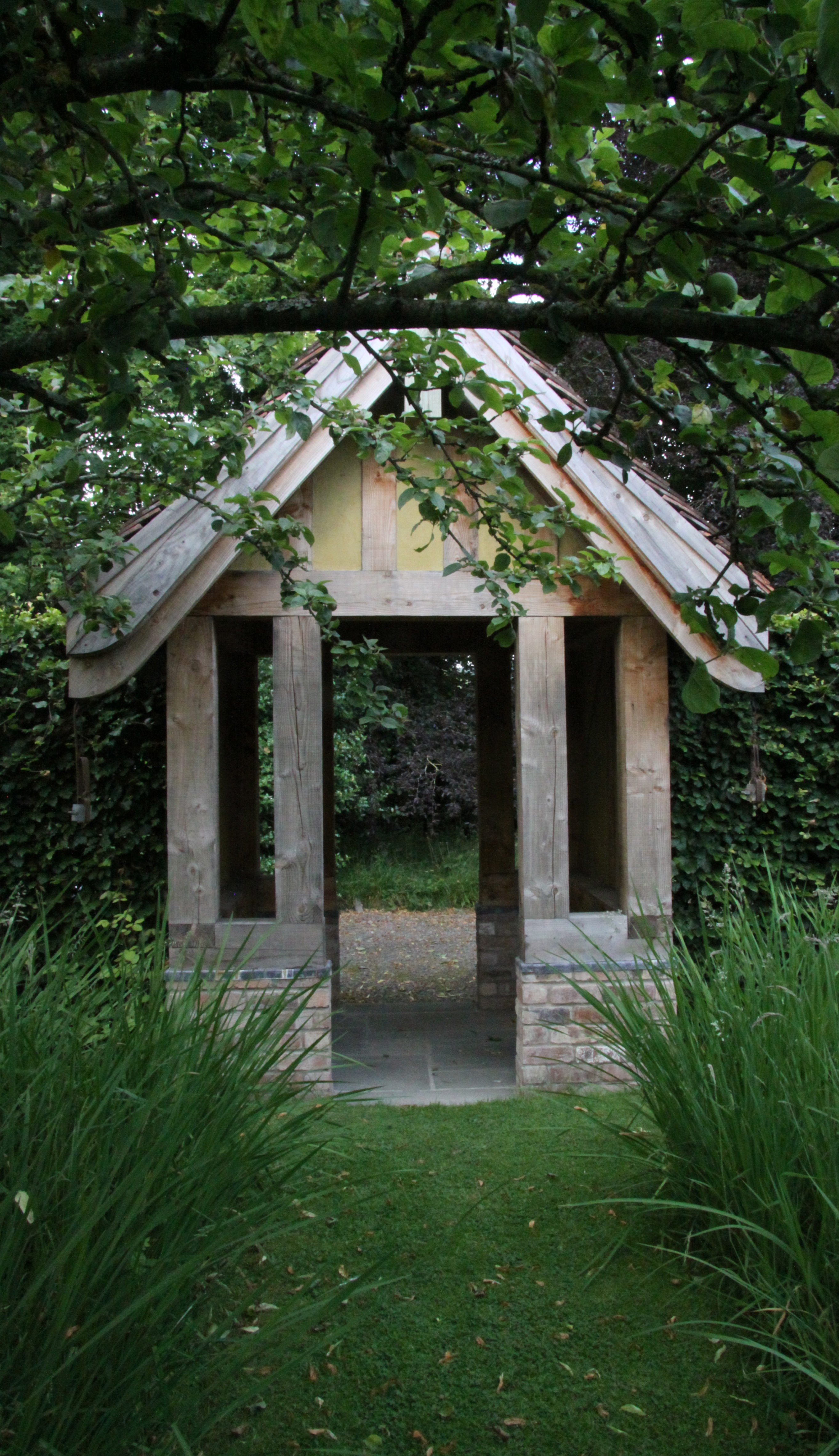 The archway has been built, beautifully, sturdily in the same handsome Dutch/Herefordshire vernacular as the ‘dovecote’ which lures you to enter the main part of the garden.