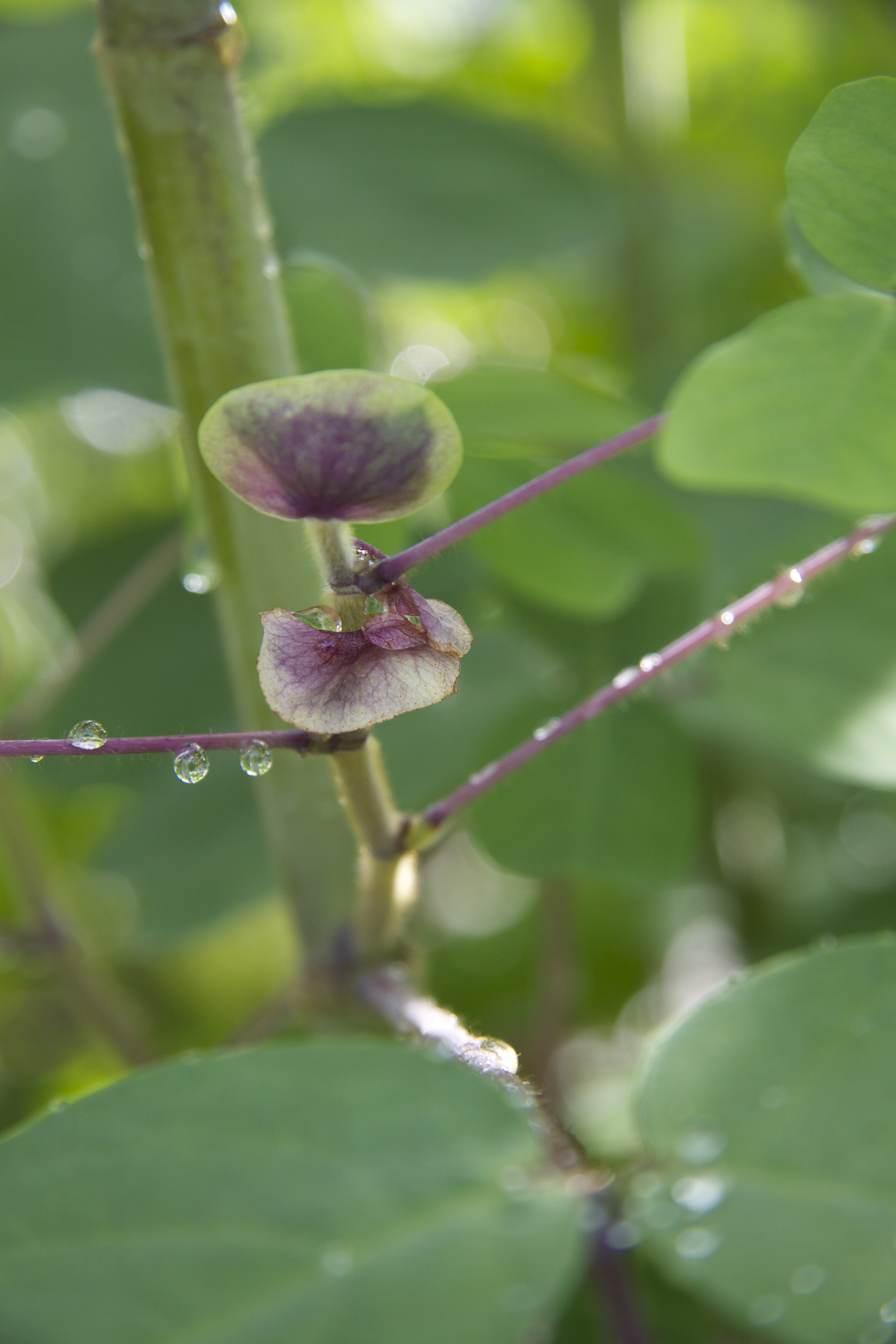 Andrea kindly put me out of my misery and revealed this plant to be a fantastic woody-based perennial which can survive a temperature of -14 degrees celsius (it will regenerate if cut down by frost) – a brilliant, or as Christopher Lloyd puts it ‘unexpectedly stylish’ foliage plant for a courtyard garden.  I remembered in fact that there is the most beautiful stand of this Amicia in the Exotic Garden at Great Dixter – I had been drawn to the purple veining of its leaves and stipules but had never seen it flower …