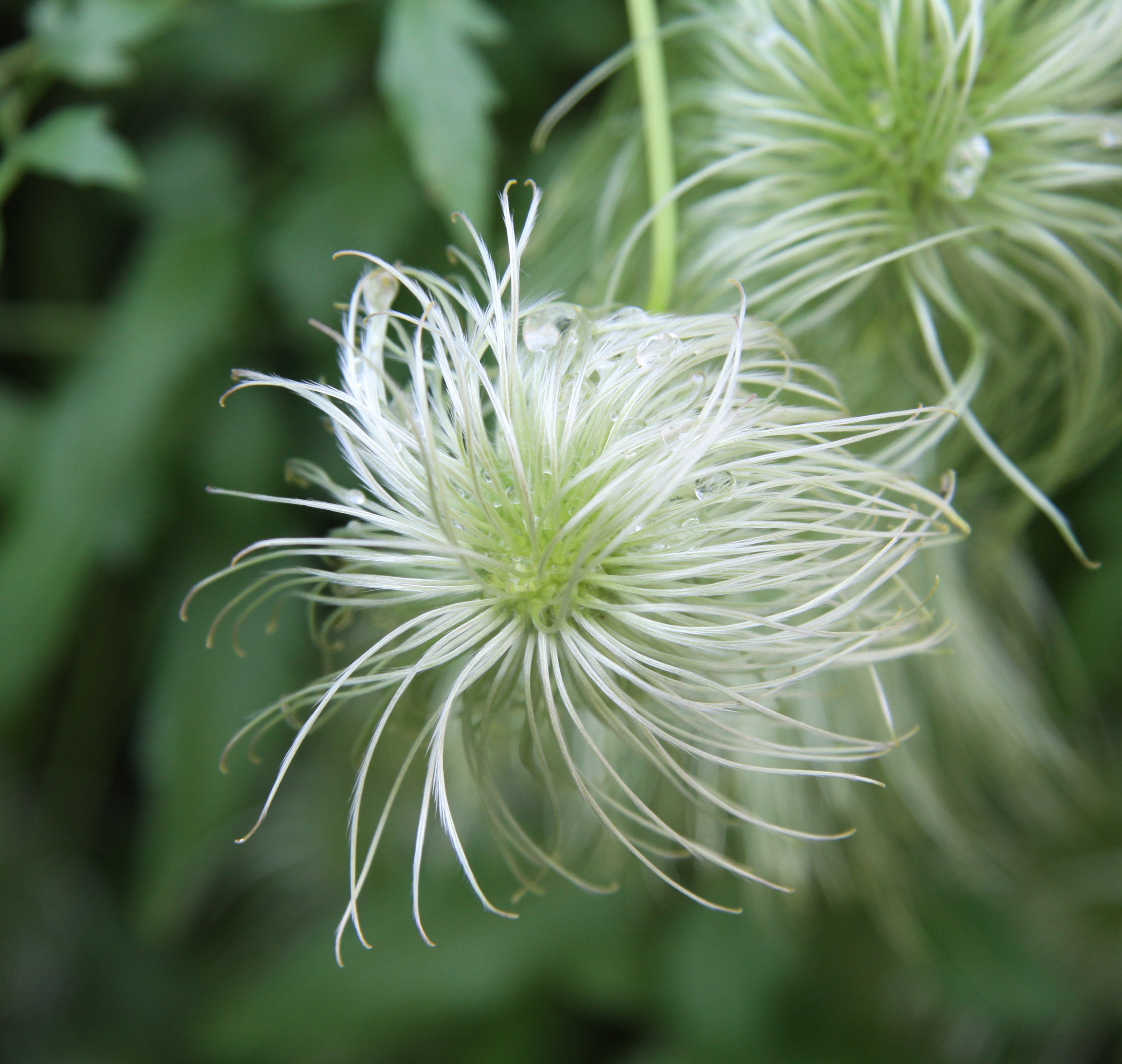 orange against orange brickOr you might stop to admire silky clematis seed heads spilling out onto the pavement: