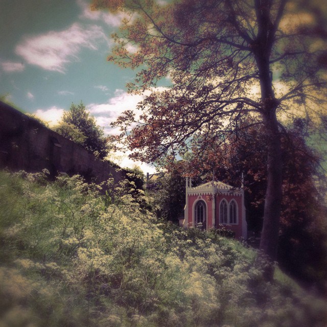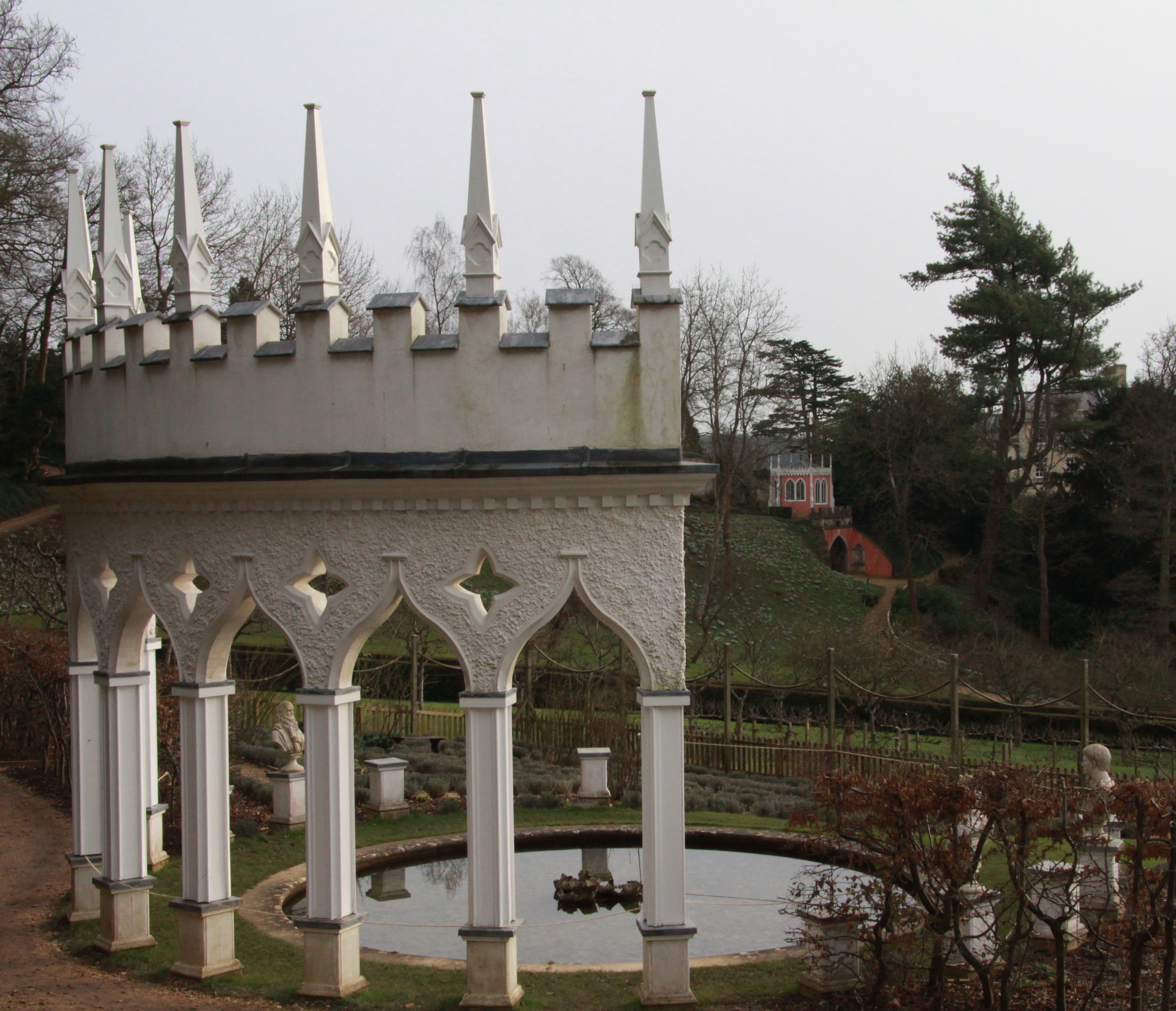 We visit the stocky Pigeon House (the only building in the garden that had a practical purpose – i.e to house pigeons), and the enticingly positioned Gothic Alcove: