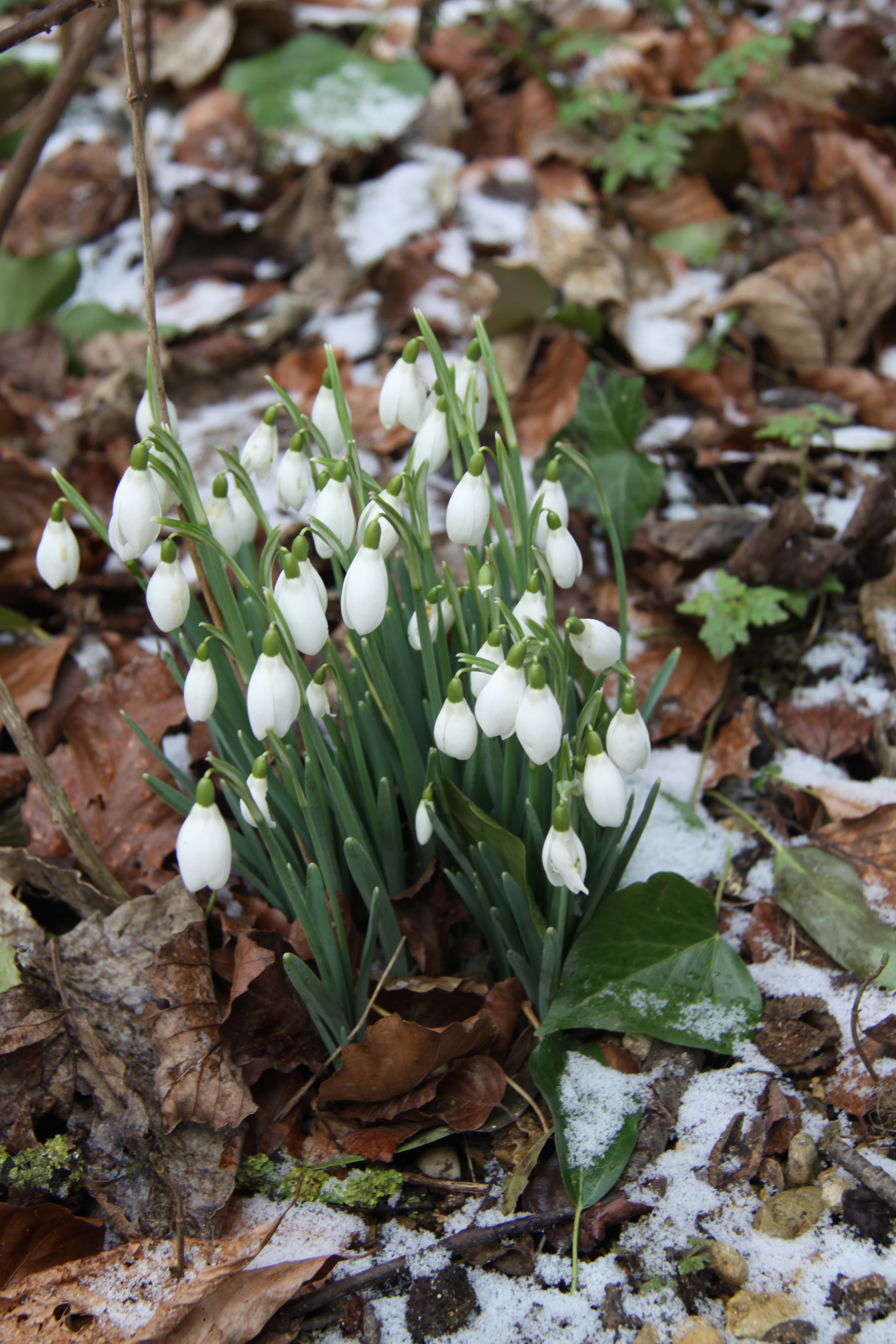snowdrops with Asplenium scolopendrium