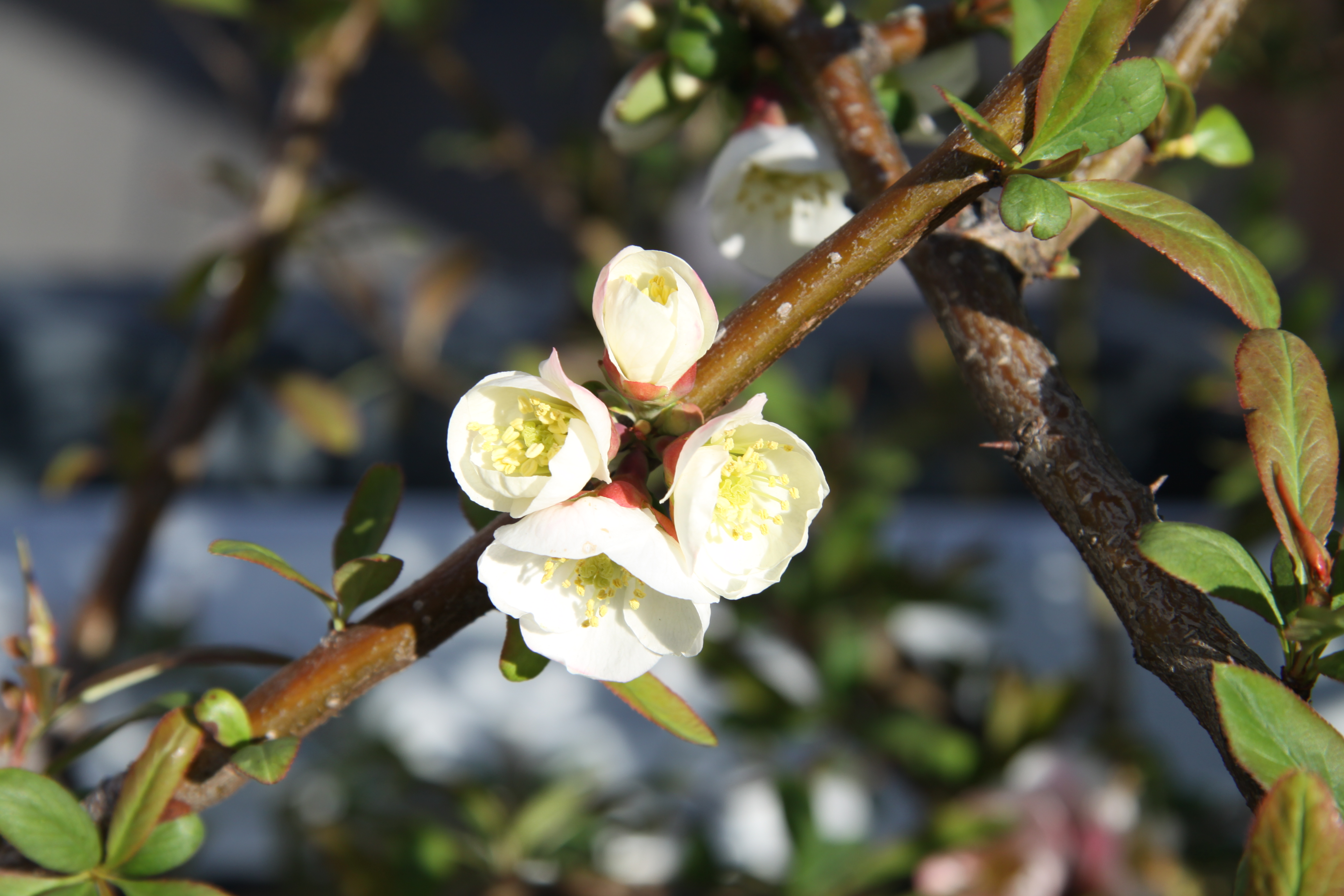Chaenomeles ‘Toyo-Nishigi’giving the bench a settled feel