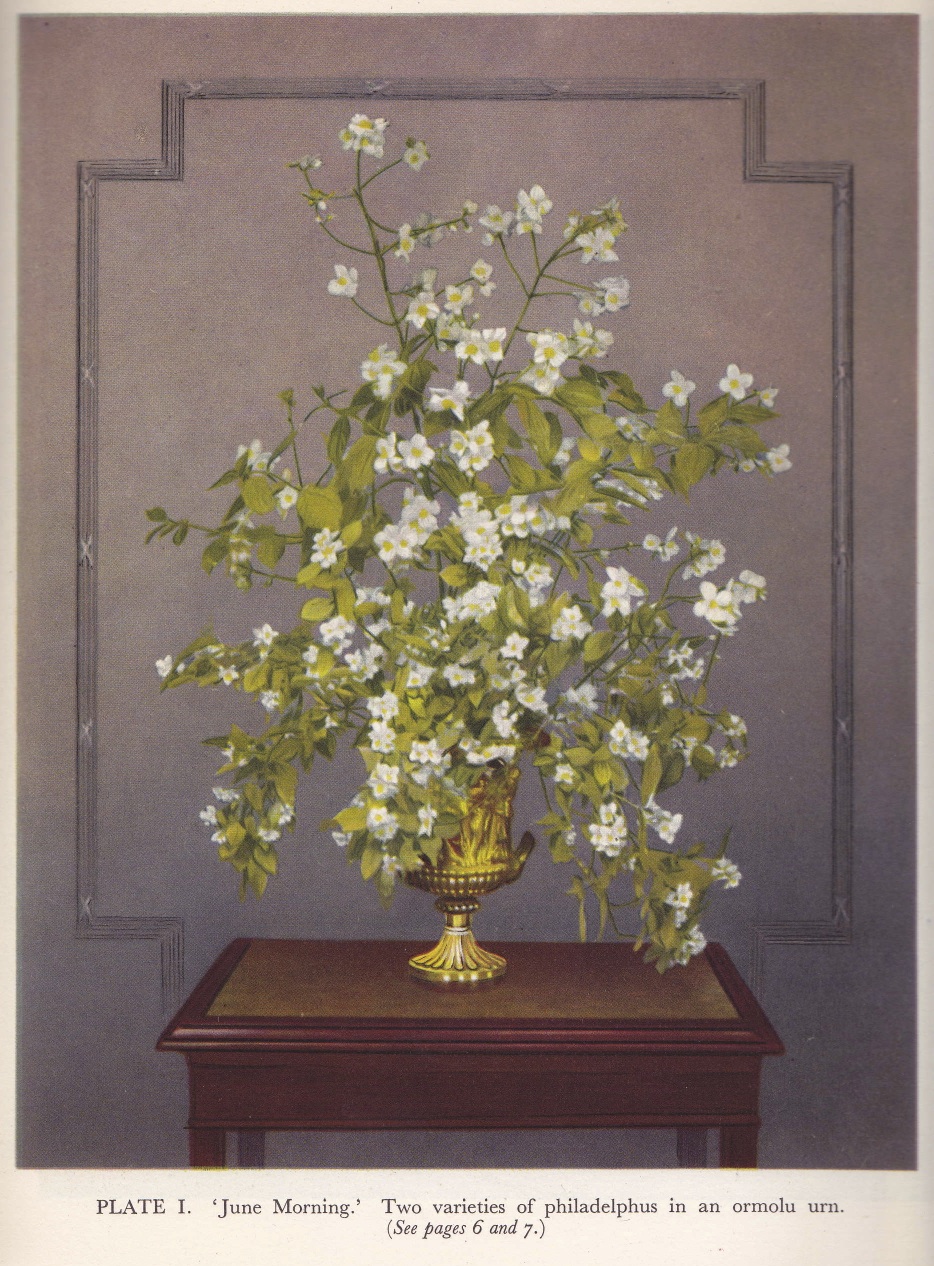 I am thinking again of Edmund de Waal and would like to collect together a few notional plants to celebrate his book ‘The White Road’ and his Royal Academy exhibition, ‘White’. Edmund is so thoughtful about placing his work – in cases, vitrines, on shelves, plinths. Should I bring together plants and vessels? My mind turns momentarily to the lovely hand coloured photographs of Constance Spry flower arrangements in her books ‘Winter and Spring Flowers’ and Summer and ‘Autumn Flowers’ – so outrageously staged and old fashioned that I think they might zoom back into our way of thinking any time soon: