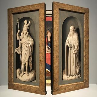 Again a photograph is a poor substitution for the demure delicacy of the outer panels which are slightly opened to reveal a tantalising slice of rich red and glowing gold of the VIrgin’s Gown within.