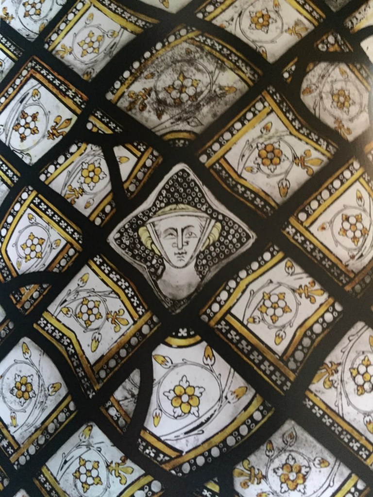 Part of a Stained Glass Panel with Quarries and a Female Head, Victoria and Albert Museum London, part of the Monochrome exhibition, National Gallery, London.