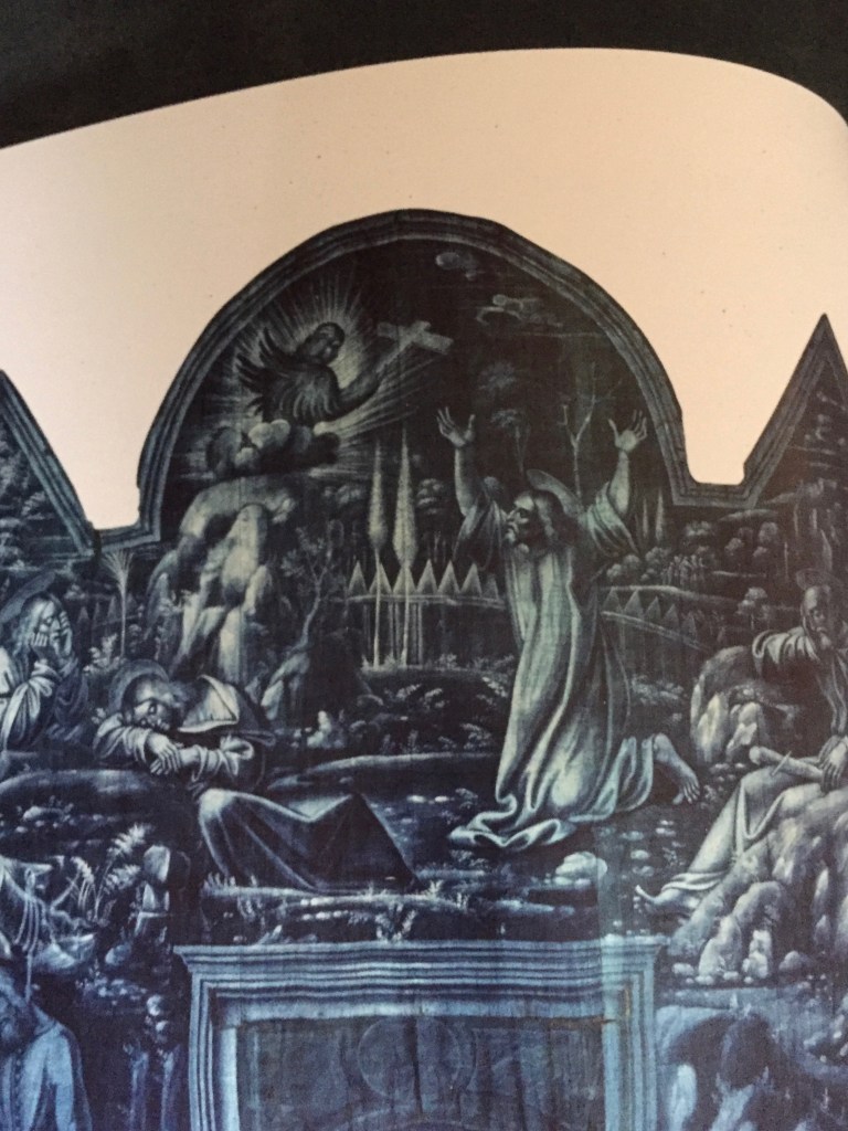 Agony in the Garden 1538, oil on indigo canvas, State Property on deposit in the Museo Diocesano, Genoa.