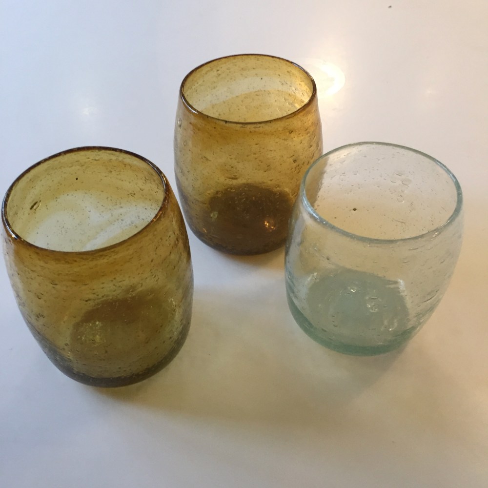 Gold and clear hand blown tumblers from Afghanistan from Ishkar.
